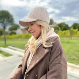 Modna beżowa czapka z daszkiem z wełny dla kobiet