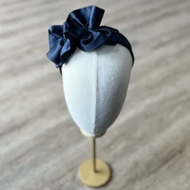 Granatowa satynowa opaska z ozdobą.