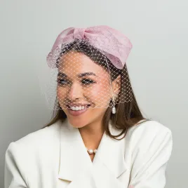 Gigantyczna kobieca kokarda z delikatną subtelną woalką na twarz. Kokarda jest sztywna, nie odgniata się i pięknie dopasowuje się do kształtu głowy. Koktajlowy dodatek robiący efekt wow!