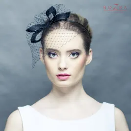 Czarna opaska na głowę z kokardą i z woalką