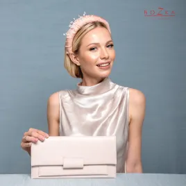 Klasyczna prosta kopertówka wykonana z gładkiej naturalnej skóry licowej w pudrowym kolorze. Idealna dla minimalistek torebka wizytowa bez zbędnych zdobień i błysku, która zdecydowanie zwraca uwagę prostą czystą formą. Odnajdzie się w bardzo minimalistycznych i nowoczesnych stylizacjach jak i w klasycznych. Zaprojektowana tak, by perfekcyjnie pasowała do naszych ozdób do włosów.