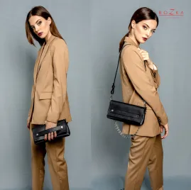 Ta niepozorna klasyczna czarna torebka jest naprawdę niezwykła. Pełni funkcję wielu rodzajów torebek: bez pasków to po prostu kopertówka z uchwytem na dłoń, na łańcuszku nadal jest elegancka ale już mniej oficjalna- możesz regulować jego długość!, ze skórzanym paskiem to klasyczna listonoszka lub modna torebka na krótkim pasku, na szerokim pasku z materiału staje się modną torebką idealną do trampek. Jest jeszcze jedna opcja, jak skrócisz łańcuszek, może stać się elegancką nerką. Gwarantujemy, że jak już ją kupisz, to nie przestaniesz jej nosić.