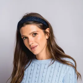 Tweedowa opaska do włosów w odcieniu granatu to stylowy dodatek, który subtelnie podkreśla urodę i dodaje klasy każdej stylizacji. Jej delikatnie połyskująca struktura sprawia, że doskonale sprawdzi się zarówno na co dzień, jak i przy wyjątkowych okazjach. To propozycja dla kobiet, które cenią elegancję w nowoczesnym wydaniu. Idealna jako modny akcent w sezonie jesienno-zimowym.