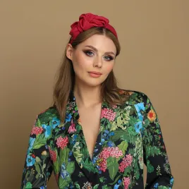 Starannie odszyta opaska damska do włosów z wysokogatunkowej, mięsistej tkaniny wiskozowej. Dodatek w pięknym odcieniu głębokiego różu to doskonałe urozmaicenie prostej i nudnej stylizacji. Zdobiony jest niewielką marszczoną kokardą. Zdobi ale nie jest krzykliwa więc idealnie wkomponuje się w codzienny outfit do pracy a także na wieczorne wyjście