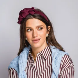 Stylowa opaska w odcieniu bordowym, wykonana z miękkiej wiskozy, z kokardą z boku. Ręczne zdobienie nadaje jej wyjątkowego charakteru. Idealna do pracy i eleganckich stylizacji.