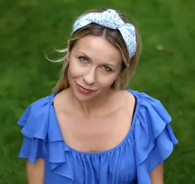 Kobieca opaska na głowę z pięknym kwiatowym wzorem. Doskonale uzupełni letnie stylizacje - od tych najprostszych z t-shirtem, po te bardziej eleganckie.