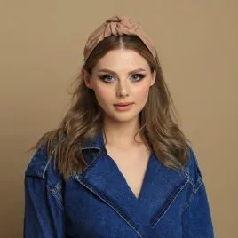 Lniana sztywna opaska z supłem nude.