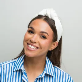 Szeroka opaska do włosów w obłędnym kremowym odcieniu uszyta z bardzo delikatnie satynowanej bawełny. Jest idealna do bardzij formalnych stylizacji do pracy jak również do codziennych i eleganckich sukienek. Ponadczasowy model!