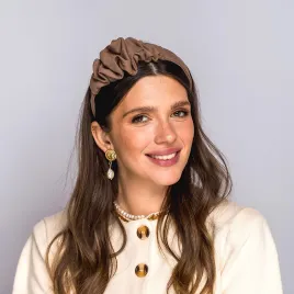 Opaska do włosów z subtelną ozdobą w kolorze mocca.
