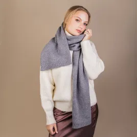 Ciepły klasyczny szalik w szarym kolorze wykonany w Polsce z włoskiej przędzy z naturalnym składem. Nie posiada żadnych wzorów i wymyślnych ściegów, co sprawia, że jest bardzo uniwersalny. Grzeje i jest miły w dotyku a to za sprawą wełny z kaszmirem.
