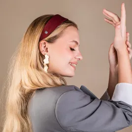 Uniwersalna opaska do włosów w kolorze bordowym z delikatnym błyskiem. Wygodna, pięknie wykonana opaska damska, idealnie uzupełnia każdą stylizację, zarówno te wieczorowe jak i casualowe. Pięknie komponuje się z innymi kolorami i idealnie sprawdzi się dla minimalistek