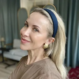 Granatowa opaska do włosów w klasycznym stylu – uniwersalny dodatek, który sprawdzi się zarówno na co dzień, jak i przy bardziej eleganckich okazjach. Prosta forma, która podkreśli każdą fryzurę.