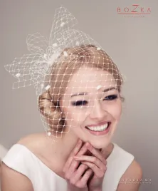 Ślubna woalka w zależności od upięcia nachodząca na całą lub część twarzy. Posiada większe oczka niż w klasycznej woalce i jest dodatkowo nakrapiana puszkiem. W całości ręcznie układana i szyta. Istnieje możliwość zamówienia wersji białej.